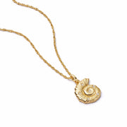 Wear a little piece of the ocean around your neck. This delicate shell pendant features pearl details hung on a fine singapore chain. Made from 100% recycled sterling silver, wear solo or layer with multiple gold chains for an everyday look.