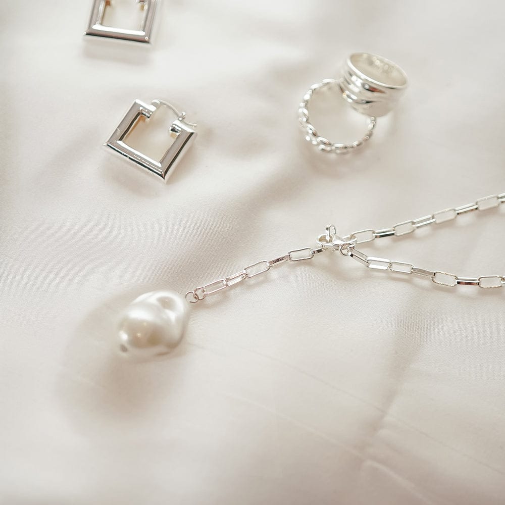 Polly Baroque Pearl Chain Necklace Silver Plate