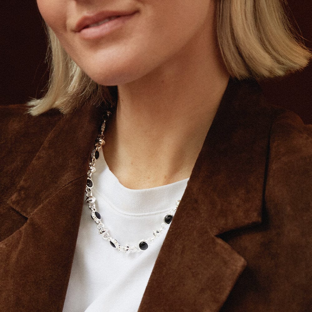 The party starts here with this one. Featuring black onyx and bobble links, this chunky chain is perfect layered, or worn solo.