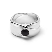 Polly Black Onyx Chunky Band Ring Silver Plate