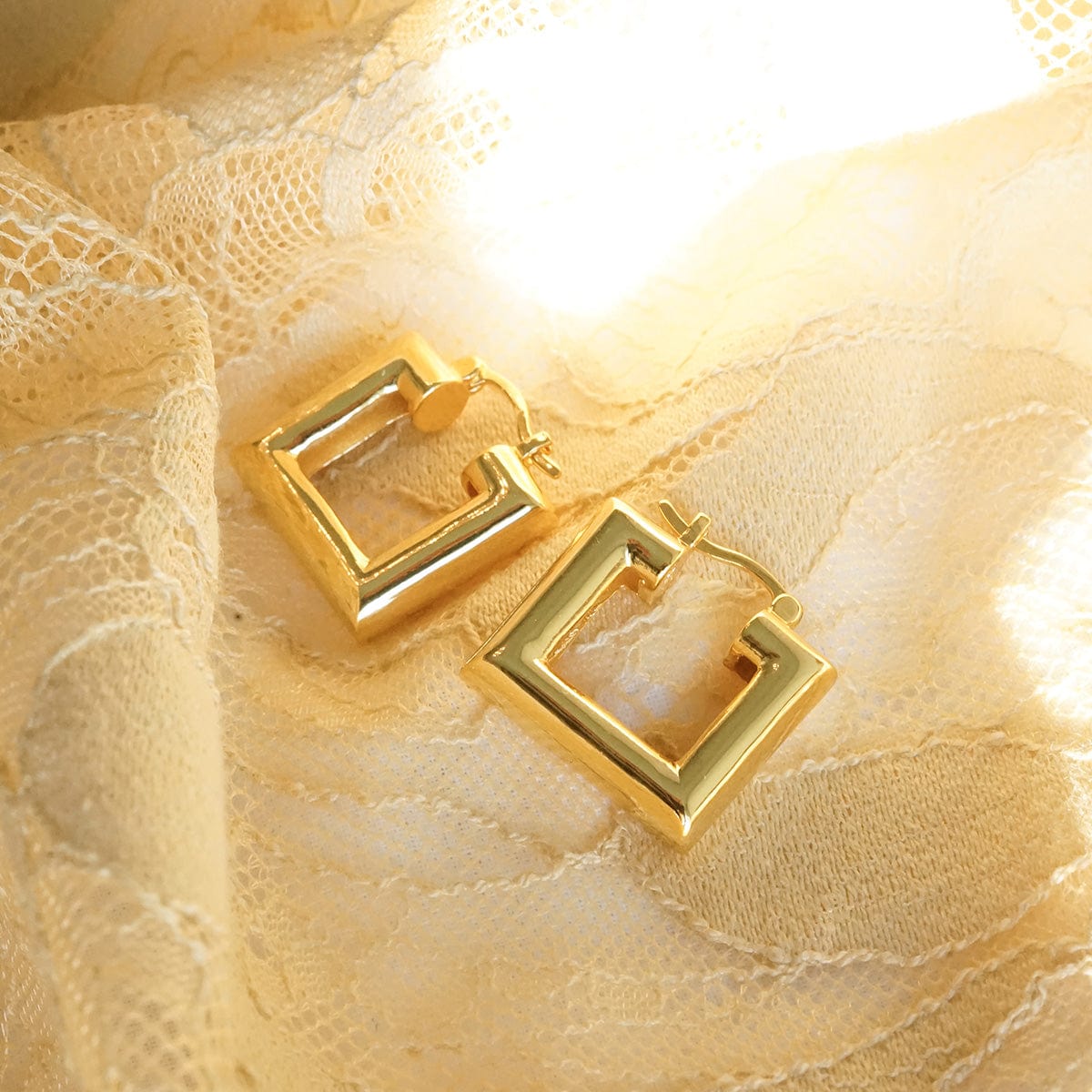 Polly Mini Chubby Square Hoop Earrings 18ct Gold Plate
