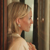Polly wears the Mini Chubby Square Hoop in her second piercing and the Chubby Square Hoop in her first piercing.