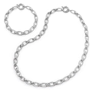 It's all in the details with this layering set. Featuring a vintage inspired chain necklace and matching bracelet. These chains are linked together by double twisted links and a statement clasp. The essential chunky chains to take your look from day to night.