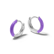 Keep it colourful with these mood boosting huggies. Coated in purple enamel and carefully crafted in 100% recycled sterling silver. Style solo or with multiple hoops for an eye-catching stack.